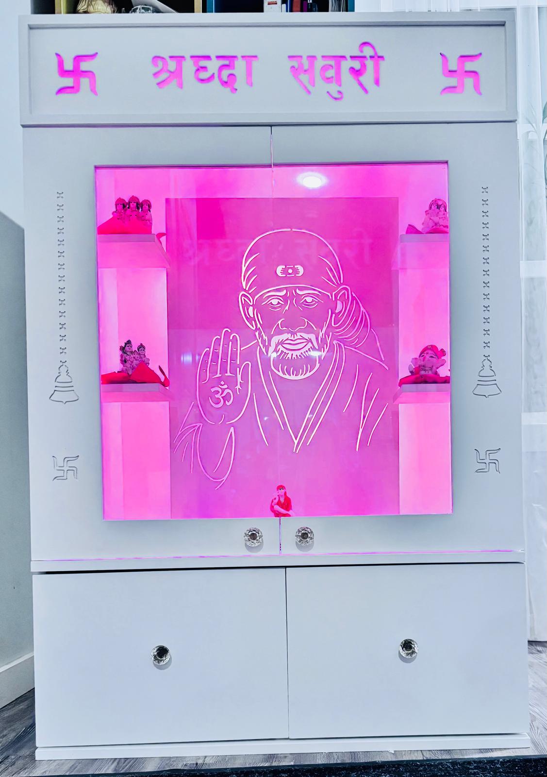 Each Mandir is built as per customer specifications — from dimensions and style to finishing and detailing. The acrylic front door adds a modern touch while keeping your sacred space protected and elegant. The two built-in drawers provide practical storage for incense, diya, and other pooja essentials.
